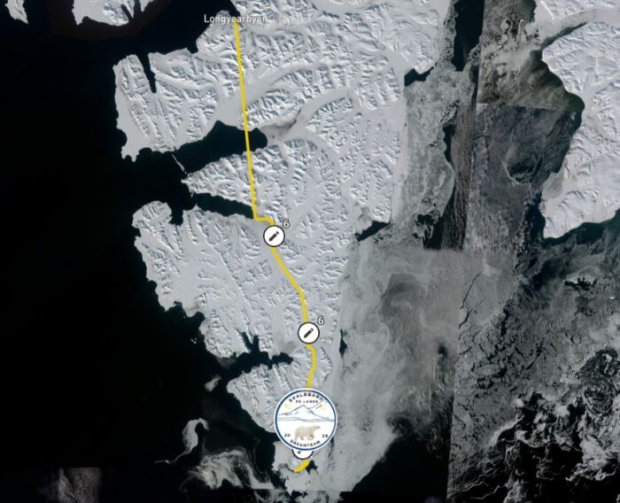 Their tracking device offers no clear insight into mileage covered so far, as they continue their planned traverse from the southern tip of Svalbard to Verlegenhuken in the far north.
