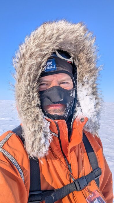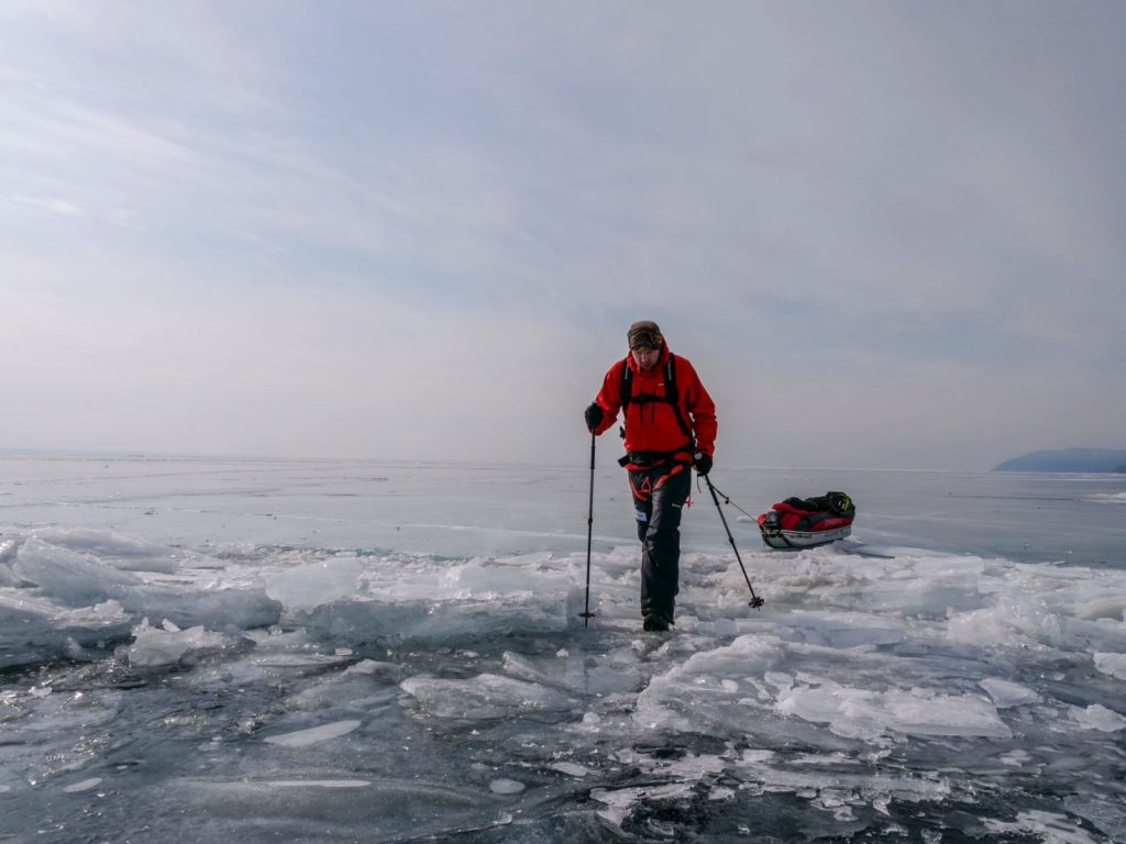He encountered colder-than-usual March conditions, with temperatures often below -30°C. Winds were mostly light, though occasional gusts exceeding 75kph disrupted travel. Ice cover across the lake was solid and reliable, while snow cover remained thin, at times forcing him to ski directly on bare ice.