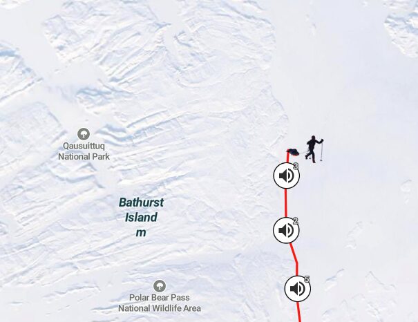 Heavy sleds made initial progress slow, and by day eight, she had covered 89km. Chandi has posted no further mileage updates, but her tracker indicates she is currently along eastern Bathurst Island.