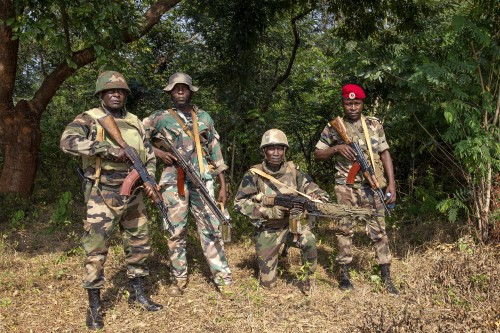 Central African Republic Soldiers provided armed support to secure one of four designated landing spots. Photo: Chris Brown