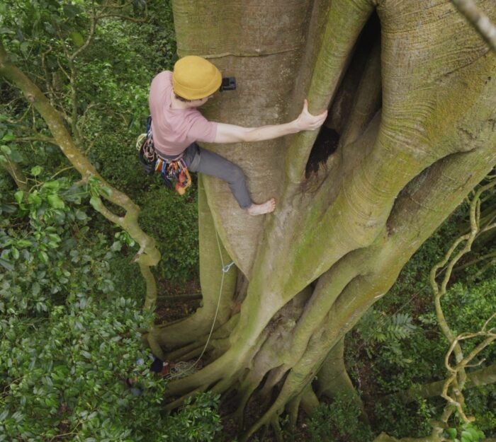 “It has the really iconic seven-meter layback, so you’re sort of pulling on a pinchy tufa structure, putting your feet just on vertical bark, pretty much pulling and pushing as hard as you can. And that’s just sort of one of the most iconic sort of individual portions of tree climbing that we’ve ever found.”
