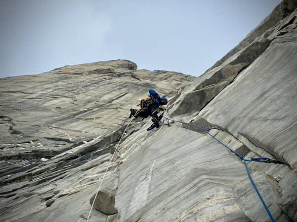 Near the top of the climb, with only one usable rope remaining and over 500m of exposure beneath them, the pair were pinned to their portaledge as strong Arctic winds hammered the wall. It was one of the most exposed moments of a trip defined by commitment and the need for well-rounded climbing skills.