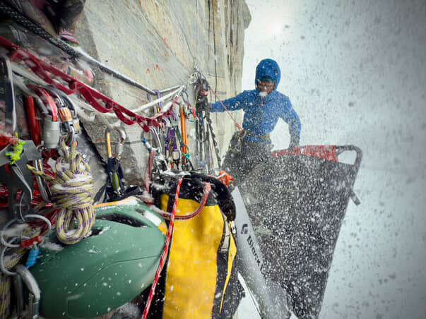 Unable to move safely, the two spent the day pinned to the wall, their portaledge buffeted by strong gusts. As the storm wore on, they took stock of their dwindling equipment.