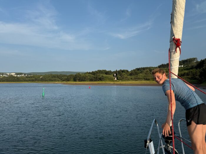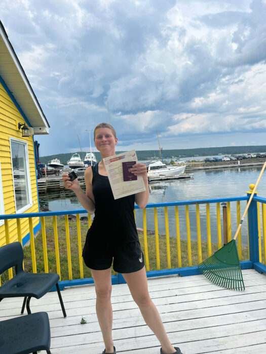 Finishing her trek at Corner Brook, Newfoundland, in early August, Kneip hitched to Nova Scotia with a Belgian sailing couple, landing in Cape Breton.
