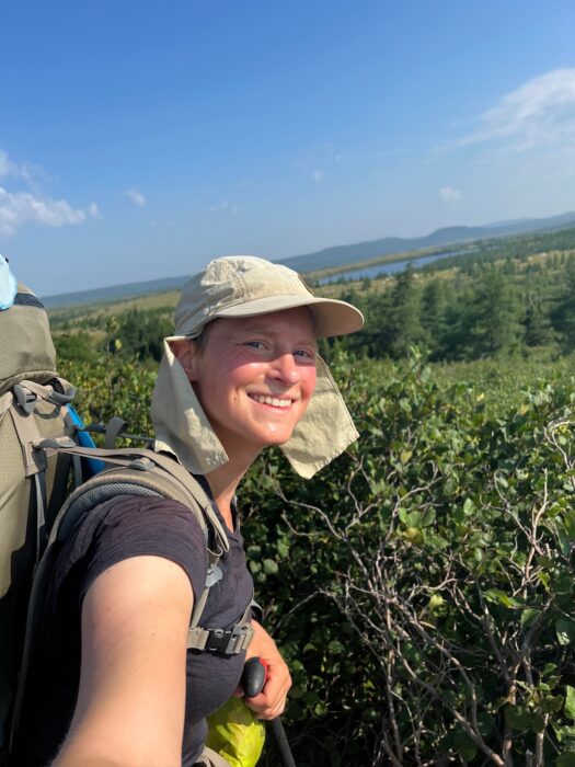 Kneip quickly sent her winter gear ahead to Ottawa, Ontario, where she plans to arrive around December, then began walking 300km across Newfoundland. The trek took 10 days in unusually hot and dry conditions.