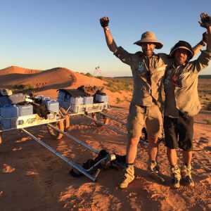Last year, men and gear were tested when they trained in winter in Iqaluit, Canada, and August/September in Australia’s Simpson Desert. According to their research, their 650 km across the Simpson is the Longest Longitudinal Crossing of this desert on foot, and unassisted. [Ed: AdventureStats does not keep record of Desert Expeditions.] They had no outside assistance and carried what they needed in the trailers they pulled for 26 days over 1,100 dunes. (Here is an article that Sebastian wrote about the trek.)