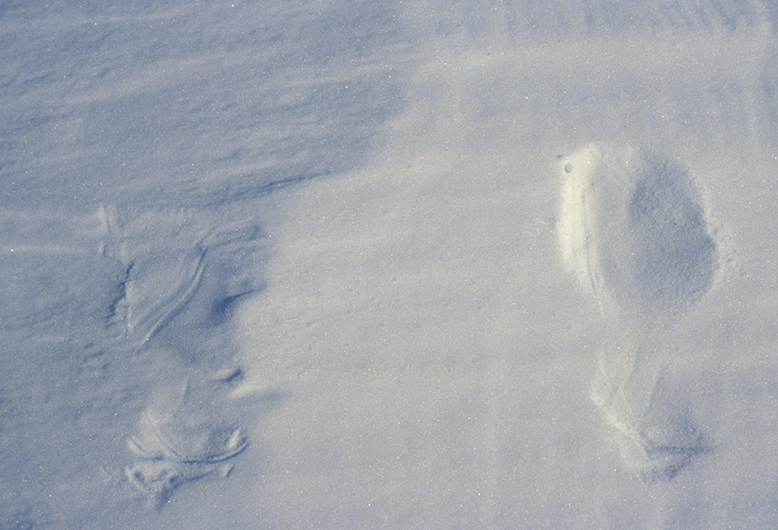 What makes sledding with heavy loads possible in the polar regions is that wind and cold transform powder snow into a hard surface. The best is so hard that the feet barely make an impression. I call it sidewalk snow, because it’s no harder than walking on a sidewalk.