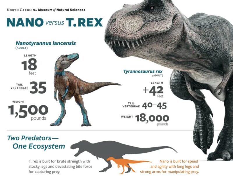 Infographic showing the differences between the Nanotyrannus and Tyrannosaurus rex. Image: North Carolina Museum of Natural Sciences