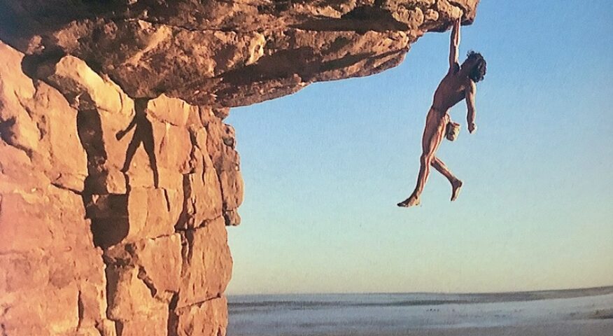 Two climbers on the Longhope route, the world's hardest sea cliff climb.