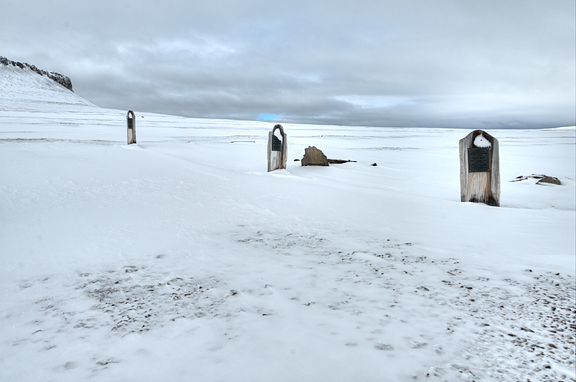 There is no question that the most-visited tourist site in the Arctic is Beechey Island, not far from the village of Resolute. There, in 1845-6, Sir John Franklin and his men overwintered. Three of them died. Their graves — plus the grave of a fourth man from a later search expedition — are still on the beach.