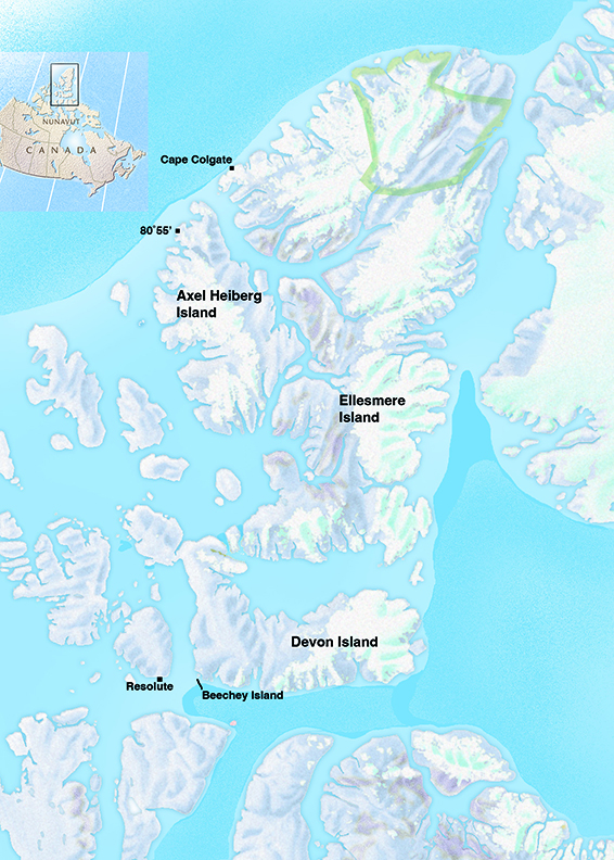 No sign of Sverdrup’s end cairn at 80˚55′ on northwestern Axel Heiberg Island. Photo: Jerry Kobalenko