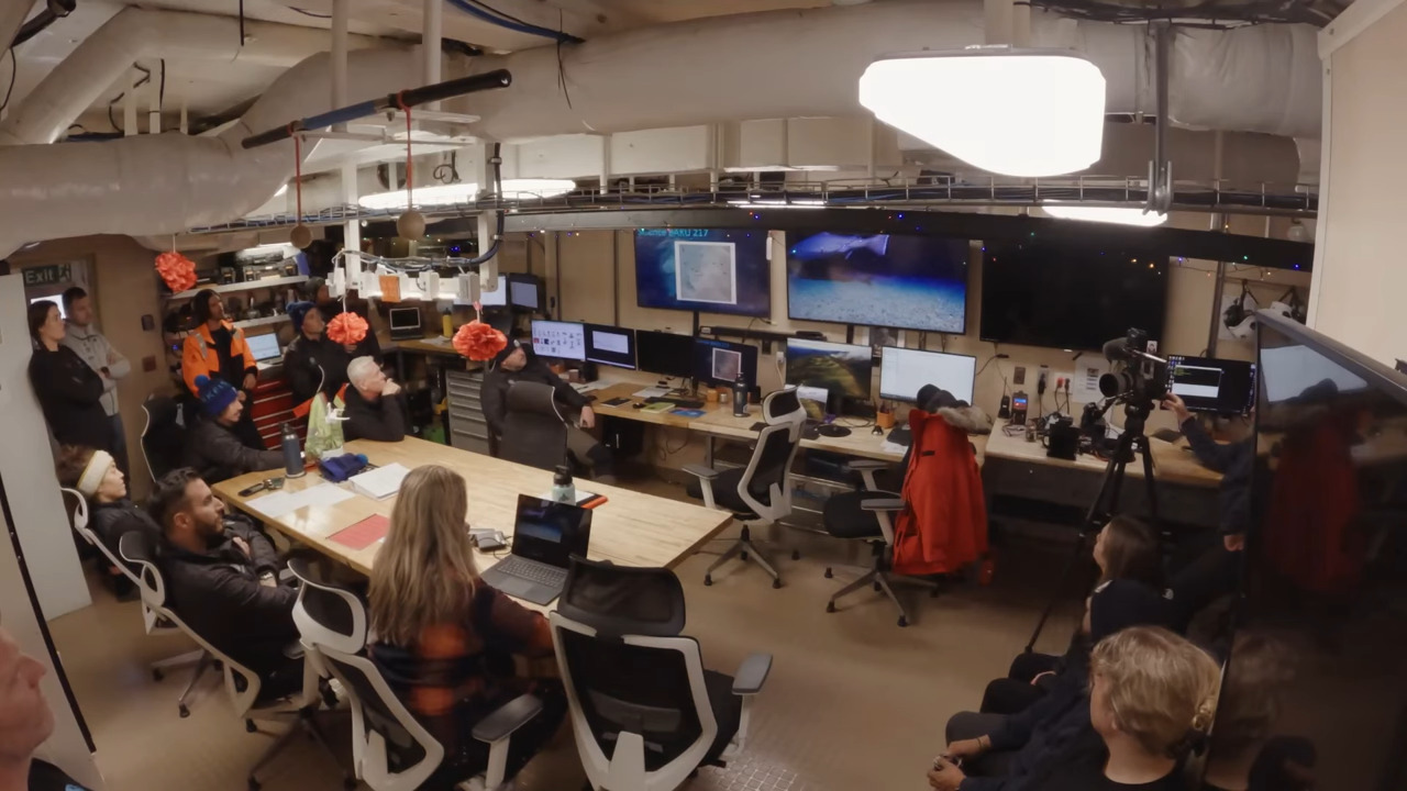 Researchers review the surprising footage of a shark. Photo: Minderoo-UWA Deep-Sea Research Centre, Inkfish, Kelpie Geoscience