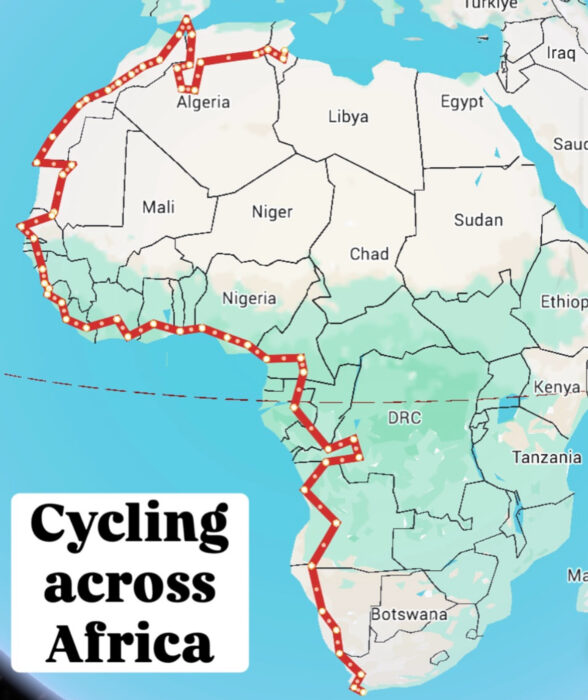 After recently closing his Asian chapter in Uzbekistan, he has now moved on to Africa, where he plans to cycle down the west coast.