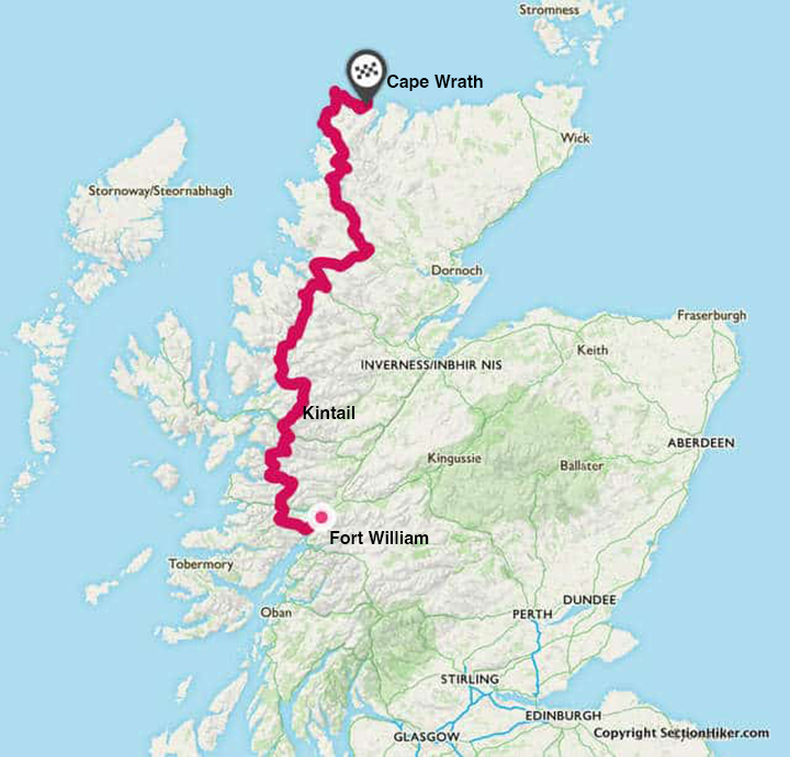 The Cape Wrath Trail wanders through the Highlands from Fort William to Cape Wrath and is considered the hardest hike in the UK. A British hiking site, SectionHiker, lists the many challenges of the route: