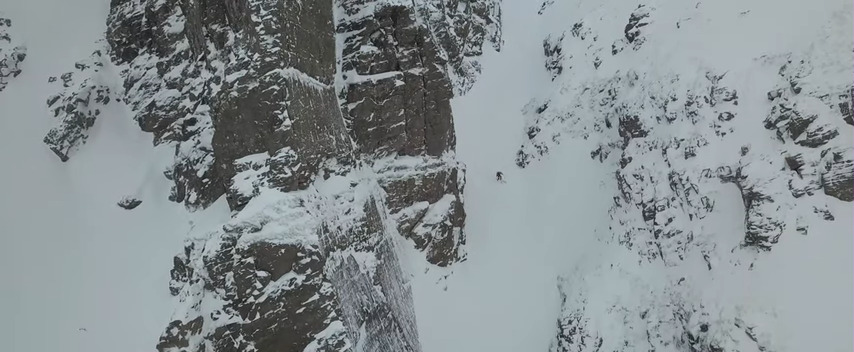 Neal skiing a new line on An Teallach. Photo: Screenshot